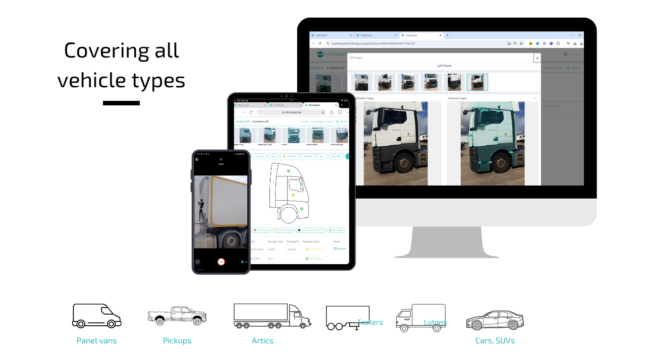 - Web dashboard to view vehicle inspection reports, alerts, manage fleet and users, damage/defect workflows