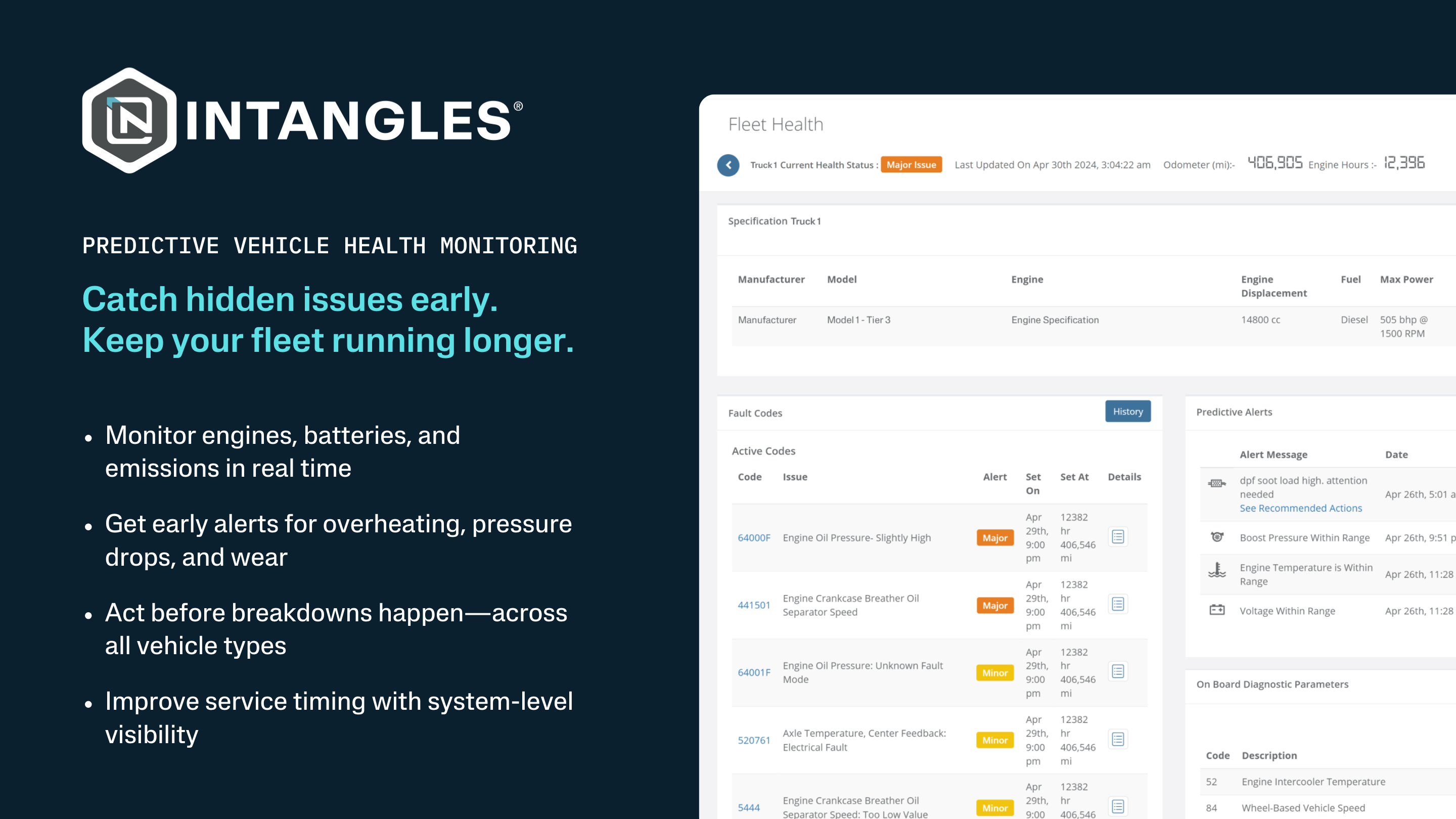 Intangles’ predictive models, fleet operators gain the ability to detect potential performance degradation and failure conditions well before they manifest as critical issues.