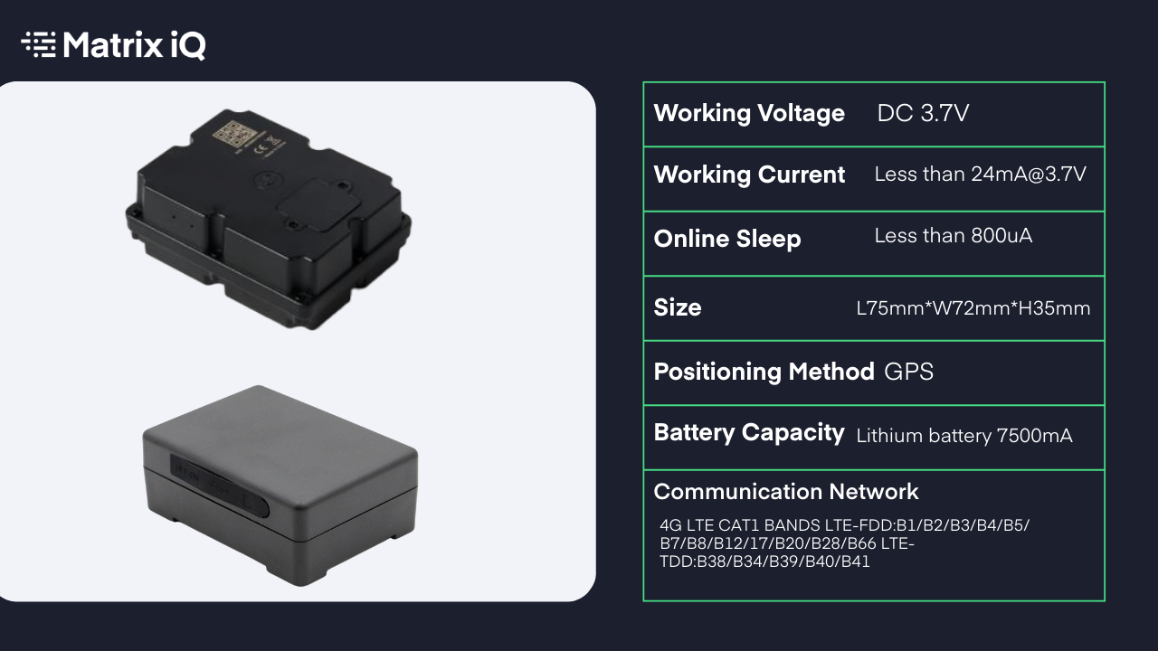 - Motion and tamper alerts: Motion and light sensors generate immediate alerts if the asset moves unexpectedly or the device is tampered with.