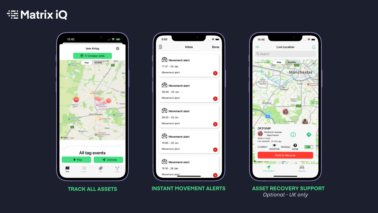 - Fast asset recovery: Get live support to recover valuable equipment quickly. If assets go missing, our recovery partners work with you to swiftly locate and retrieve them. (Optional - UK only)